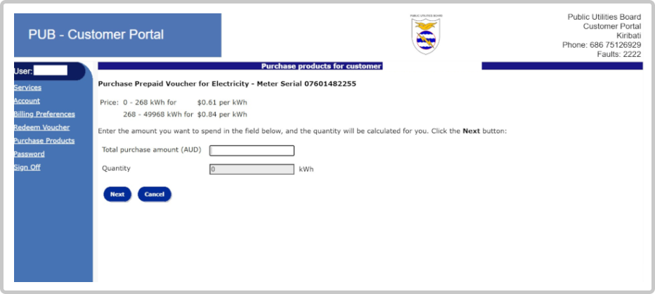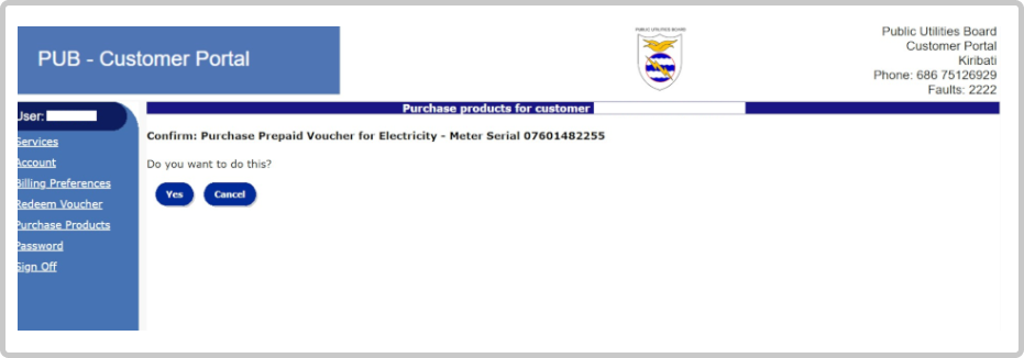 Also note that if you have Vouchers which require the 555 service. These vouchers can be redeemed for your Prepay Meter by clicking on Redeem Voucher on the left. For further enquiries, please ask at our Branches.