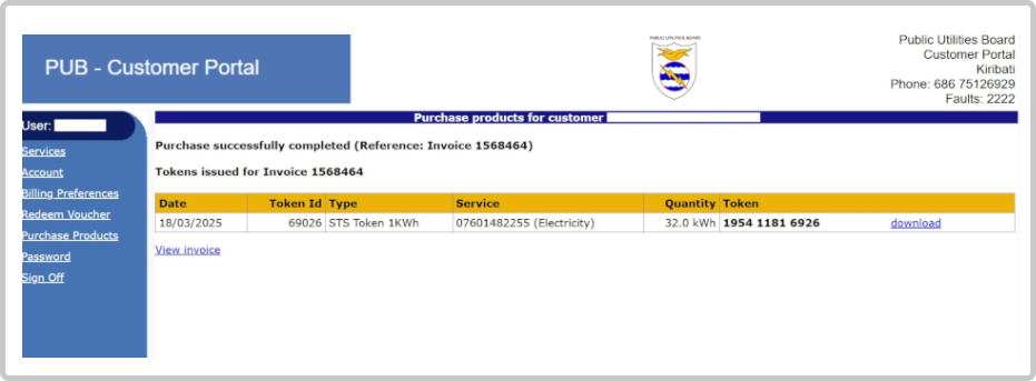 How to Purchase Prepay Tokens From your PUB Customer Portal
